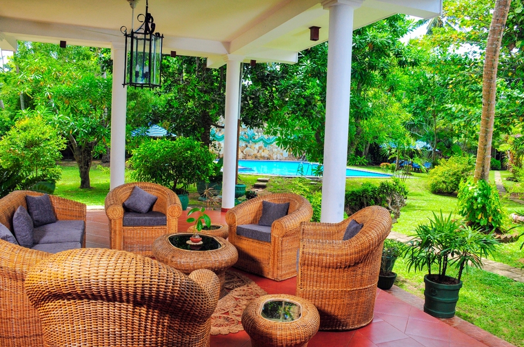 Bereits das Erdgeschoß der Villa Lanka Pearl ist eine feine kleine Welt für sich. Hier erwarten die Gäste, nebst dem gemütlichen Loungebereich, das Restaurant, eine kleine Bar sowie zwei herrliche Gartenterrassen.