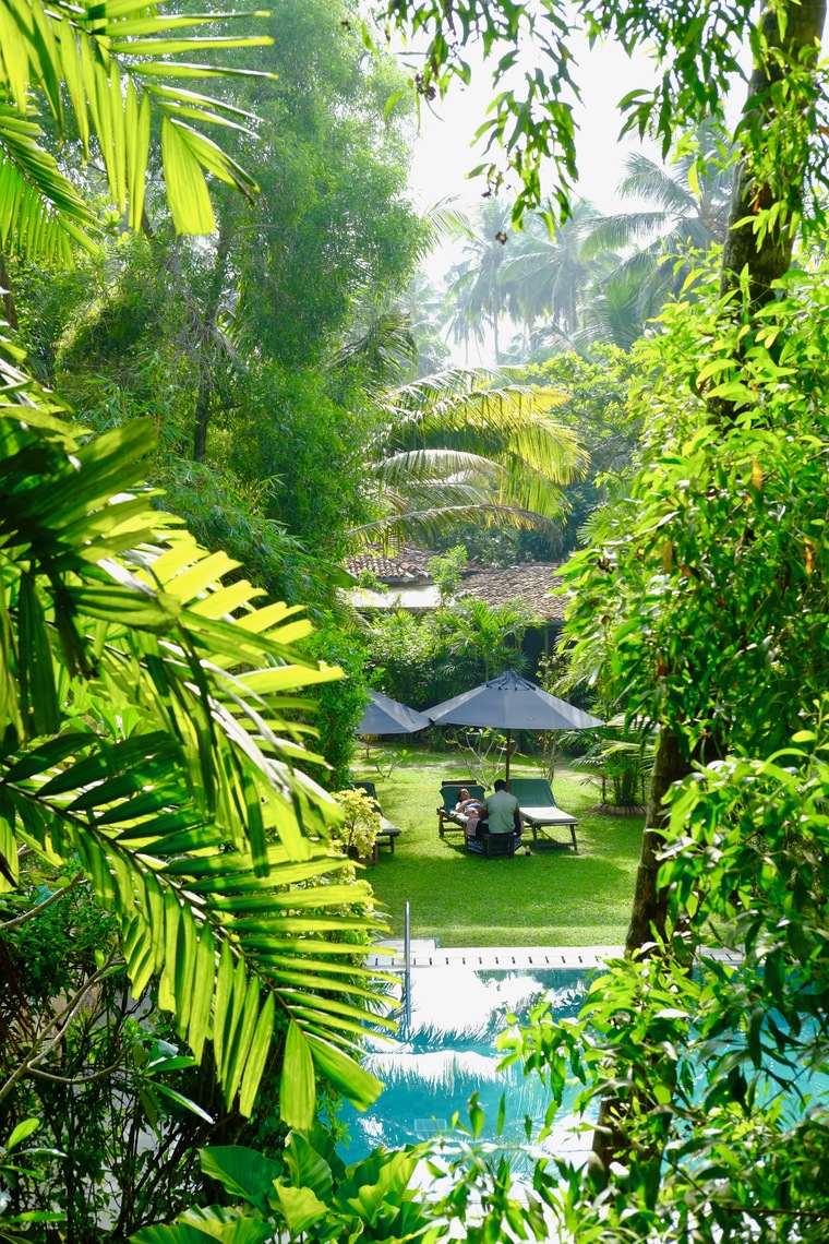 The wonderful tropical palm tree garden constitutes the green heart and centre of the compound. You not only stroll through it in order to get to the elegantly designed Ayurveda treatment rooms or the sauna. It is also the perfect place for relaxing after or in between treatments on comfortable loungers or in the hammock. This is also where each morning yoga exercises are arranged for an ideal start of your day; your welcome in the sunshine under the palm-trees, or, if you like, at the beach.